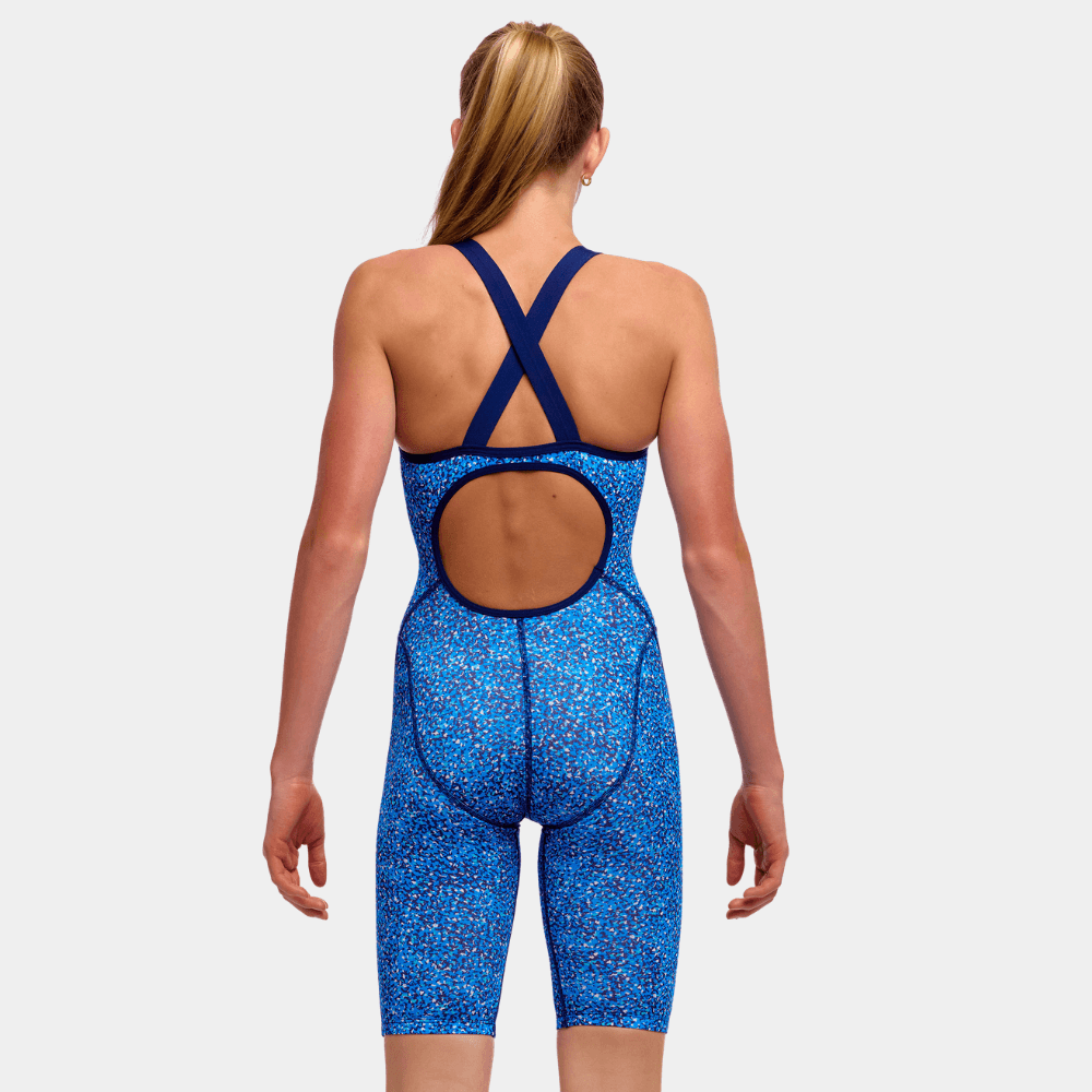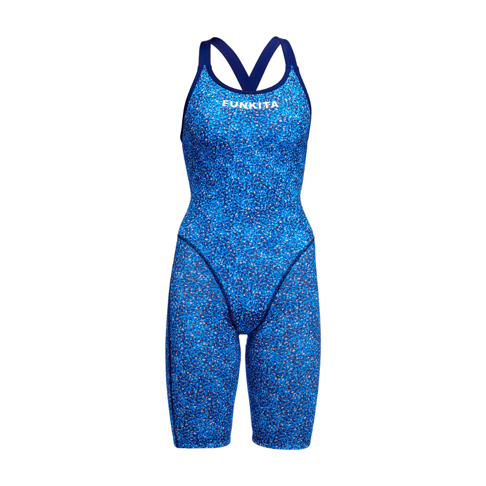 The perfect training suit with full upper leg coverage and wide elastic shoulder straps to provide exceptional comfort and support while swimming. Panelled to provide a smooth fit on the body. Size down 1 size from your normal Funkita size for a tighter fit if you are swimming laps.
