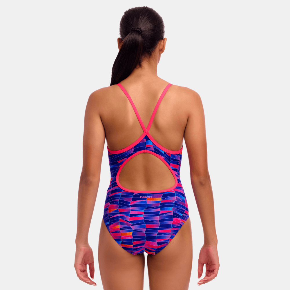 Our most popular one piece with fabric panels across the back for a secure fit and comfy single bind shoulder straps. ECO C-INFINITY is 100% chlorine resistant and gives new life to discarded plastic bottles.